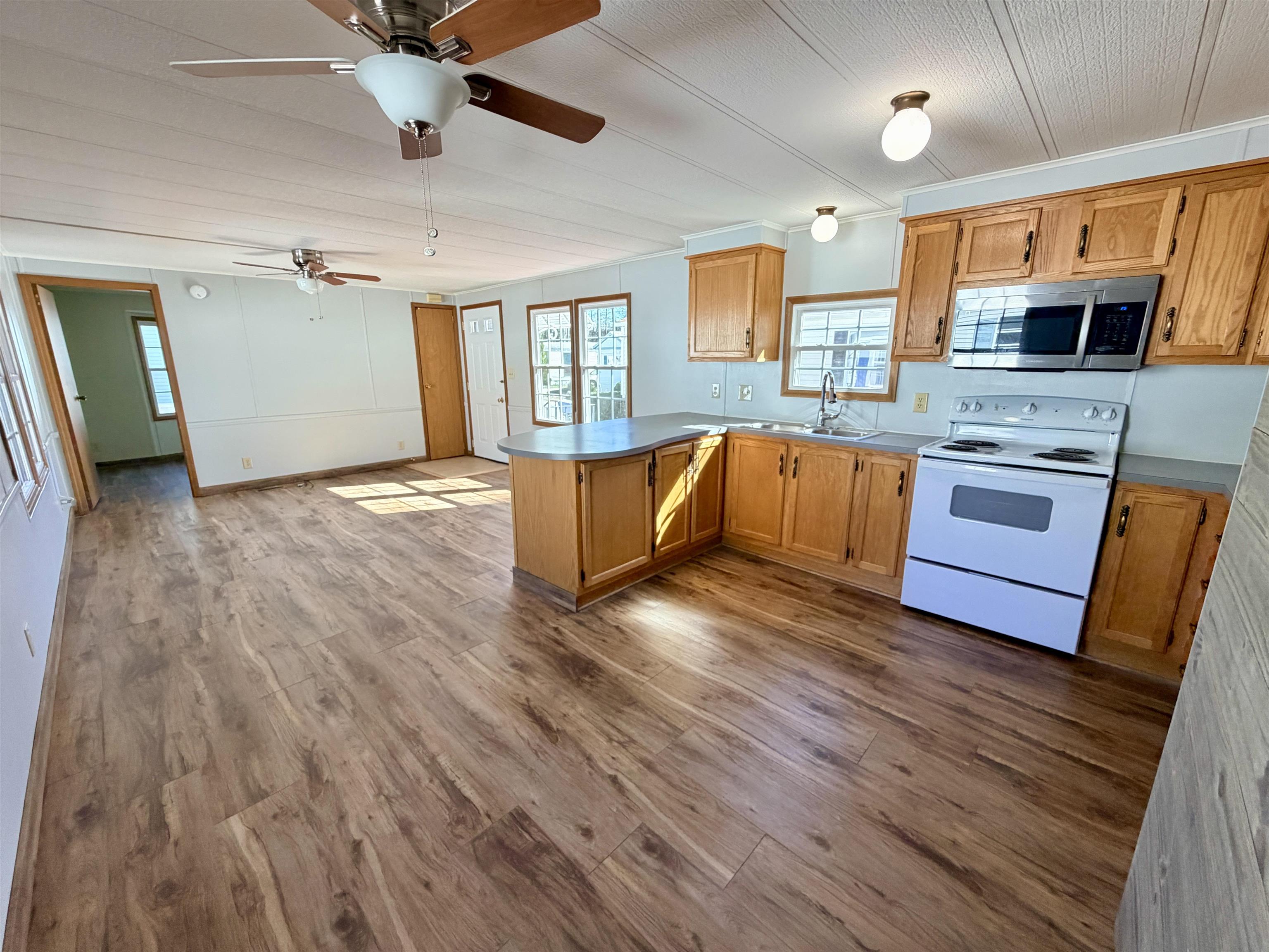 Welcome to 41 Thistle Way! This beautifully updated manufactured home is tucked away in a small, quiet, and highly sought-after neighborhood offering both comfort and convenience. Ideally located near scenic Crystal Lake, Derryfield Country Club, shopping, restaurants, and major commuter routes, you’ll love how close everything is while still enjoying a peaceful setting. Inside, the home feels nearly brand new with new flooring throughout, fresh paint, and a bright open-concept layout perfect for everyday living. The spacious kitchen offers plenty of room to cook and gather, complete with a new microwave and great flow into the living area. With 2 bedrooms thoughtfully placed on opposite sides of the home for added privacy, this layout is both functional and inviting. The large bathroom features a beautifully updated walk-in shower by Bath Fitter with a lifetime guarantee. Exterior insulation recently completed by USA Foam adds even more value and efficiency. Move-in ready and low-maintenance—just unpack and enjoy! *Park approval required for buyer purchase.