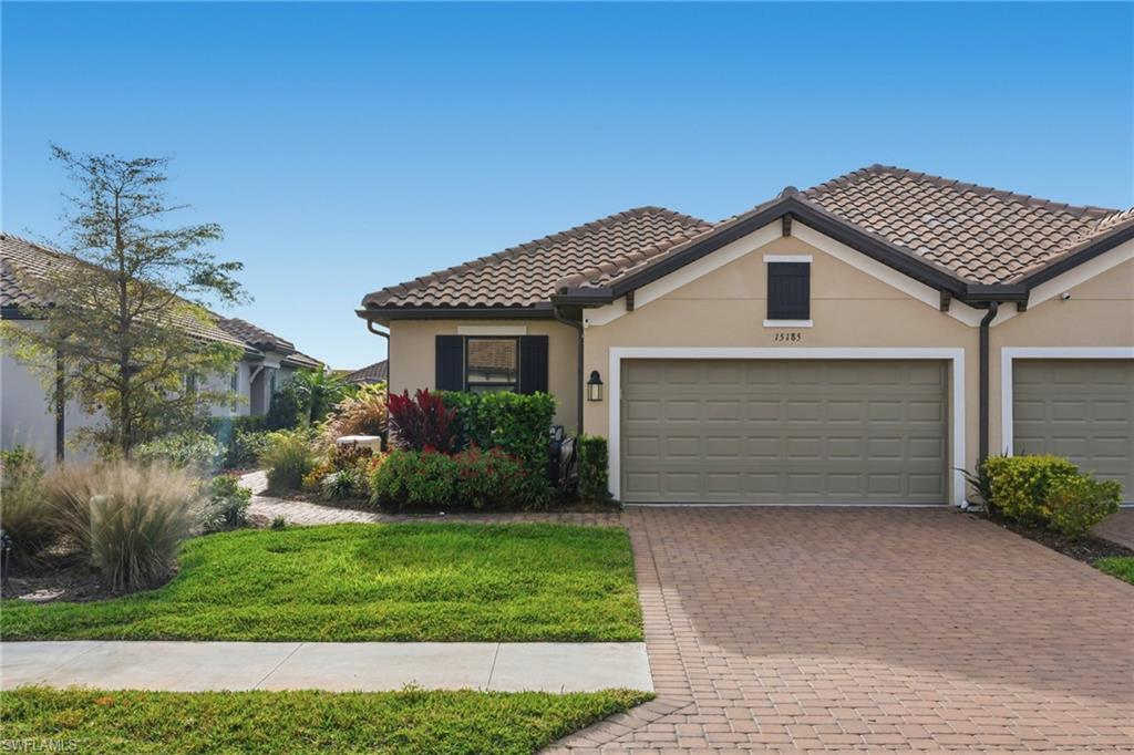 Nearly new and built in 2023, this beautifully designed 3-bedroom + den, 2-bath villa offers 1,950 square feet of stylish, low-maintenance living with a 2-car garage with EV hook up in the highly sought-after Esplanade by the Islands. The home features a gorgeously appointed interior with custom woodwork and plank tile flooring throughout the main living areas. The bright, open kitchen showcases a peninsula layout, quartz countertops, gray shaker cabinetry, tile backsplash, and stainless steel appliances, seamlessly connecting to the dining and living spaces—perfect for everyday living and entertaining. Additionally the community is all natural gas and fit with a WHOLE HOME GENERATOR! The living room is highlighted by an elegant coffered ceiling, adding architectural interest and sophistication. The primary suite is a private retreat featuring a tray ceiling, walk-in closet, and an ensuite bath with dual vanities and a glass-enclosed shower. Additional conveniences include a laundry room with laundry tub and a versatile den ideal for a home office or guest space. Enjoy Florida living outdoors on the screened lanai with privacy wall, complete with an outdoor kitchen and southwest rear exposure, ideal for afternoon sun and evening relaxation. Residents of Esplanade by the Islands enjoy world-class, resort-style amenities, including a grand clubhouse, resort pool and lap pool, full-service spa, fitness center with classes, tennis, pickleball, bocce, dog park, on-site restaurant, and scenic walking and biking paths—all within a gated community ideally located near downtown Naples, Marco Island, shopping, dining, and beaches.
