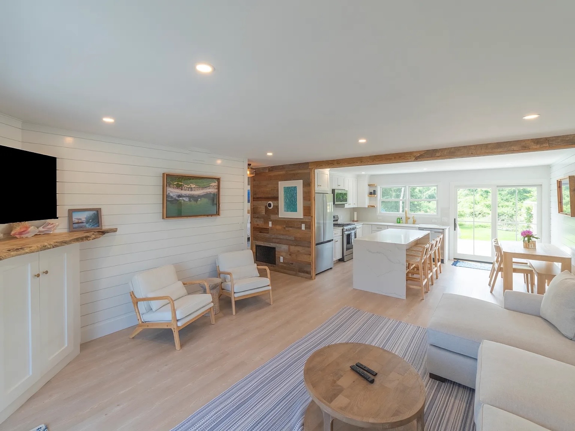 This chic cottage consists of 3 bedrooms, 1.5 baths with an outdoor shower. The new owner is currently painting both inside and outside, new flooring, new beds and furniture through out. The back yard has lots of room for entertaining including a large deck with an awing for hot summer days. There will be beach cruisers available to bike to the best surfing beach in the Hamptons. Close to restaurants, boating and hiking trails.